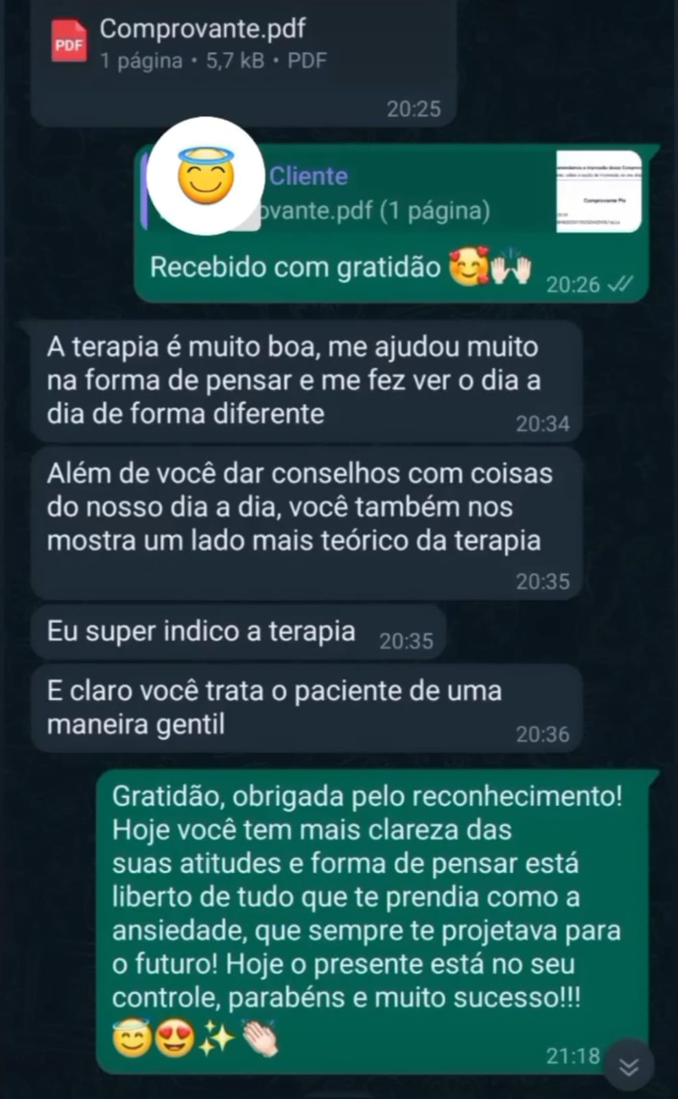 Fazer psicoterapia possibilita o autoconhecimento, a solução de conflitos e a melhora da saúde mental. Posso te ajudar a olhar para si mesmo e pensar nas razões que levam à determinados pensamentos ou atitudes em relação a uma área de sua vida. Muitos esperam chegar em uma situação limite para buscar ajuda. Porém pode-se diminuir muito sofrimento se a busca por ajuda se der antes de uma grave piora clínica.