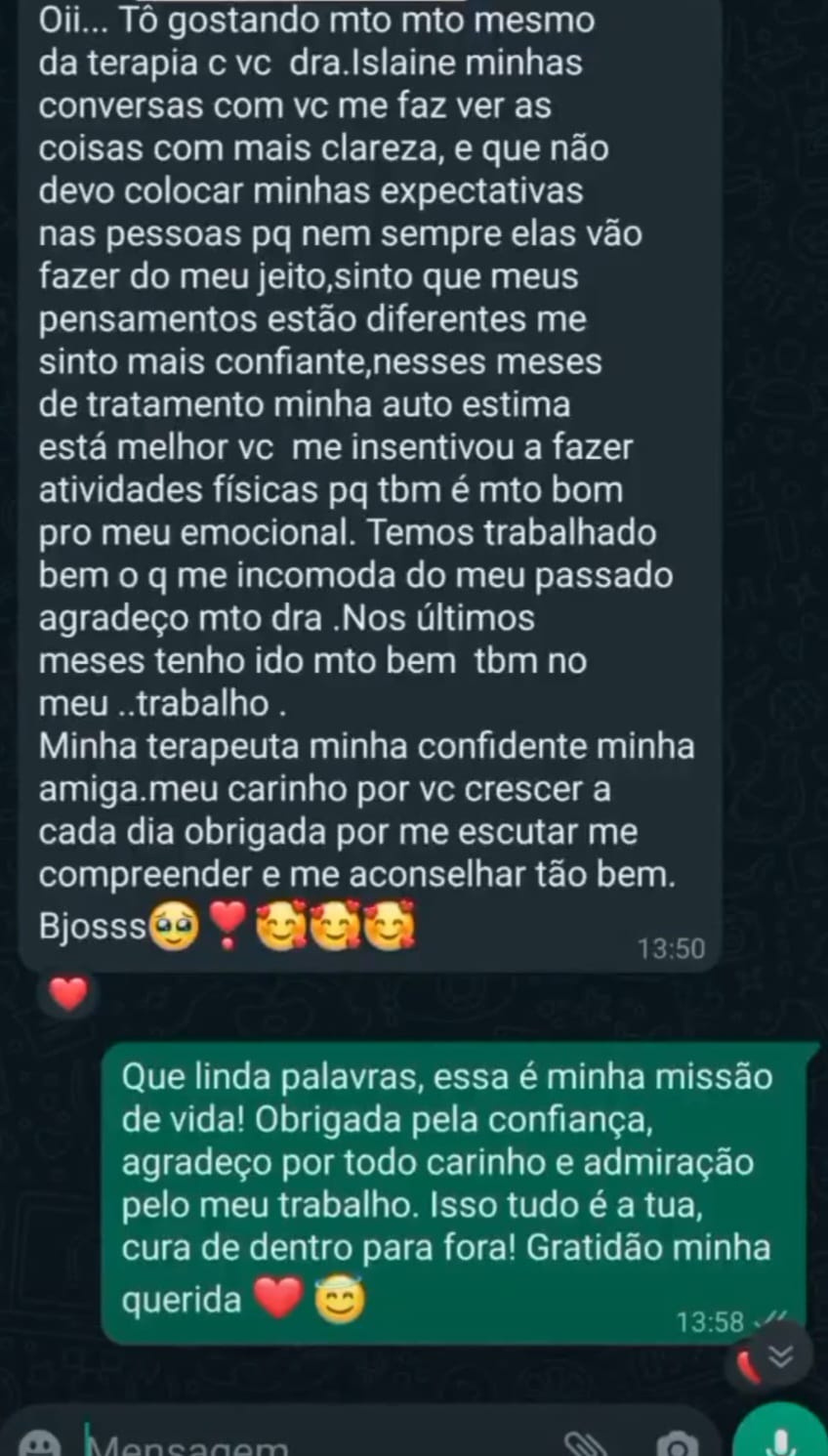 Meu nome é islaine Costa, você sabia que Existe uma maneira de aliviar seus sofrimentos emocionais, viver uma vida livre do peso dos pensamentos destrutivos e retomar